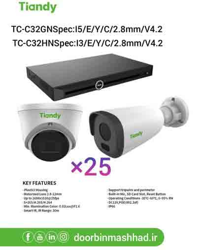 ## پک کامل 25 عددی دوربین مداربسته تیاندی مدل TC-C32GNSpec:I5/E/Y/C/2.8mm/V4.2 به همراه دستگاه ضبط کننده TC-R3232Spec:I/B/K/V3.1